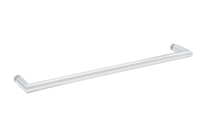 MT24WSS: 24" Stainless Steel Round Mitered Corner Towel Bar, Single Side Glass Mount.